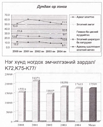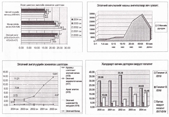 * Хоол шингээх эрхтний өвчин зүүн болон хангай-говийн бүсэд өндөр байна.