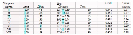 Төлөвлөгдсөн зорилгот эмнэлзүйн шалгалтанд орсон 194 оюутны дээд дүн 96.8 %, доод дүн 69.4 %, дундаж дүн 84.8 ± 0.39 % , голч нь 85.1 % , мода нь 85.3 % найдвартай байдлын коэффициент 0.482 байв